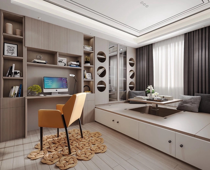 榻榻米下方可以做成巨大的儲物空間,將平時使用頻率不高的換季衣物、被子等,分類擺放其中,讓小臥室功能翻倍。