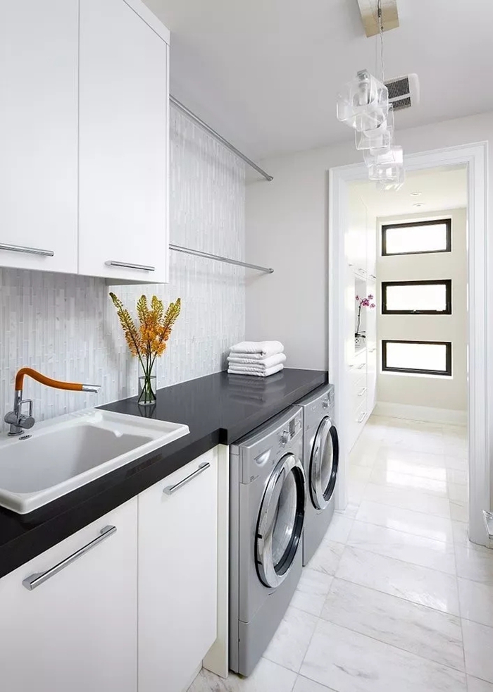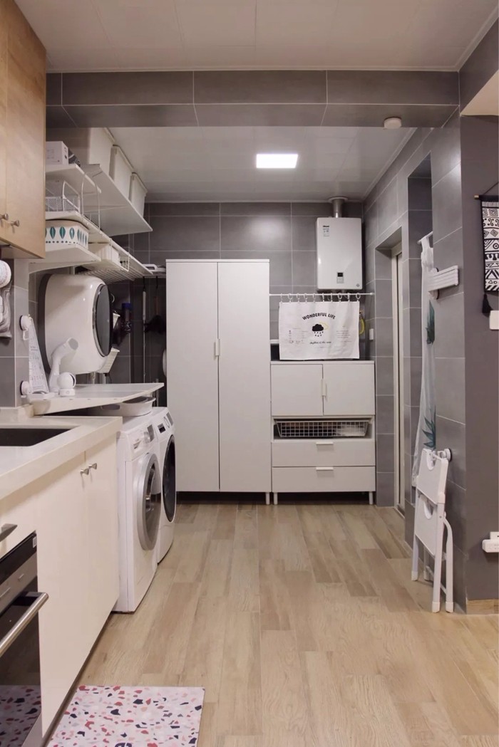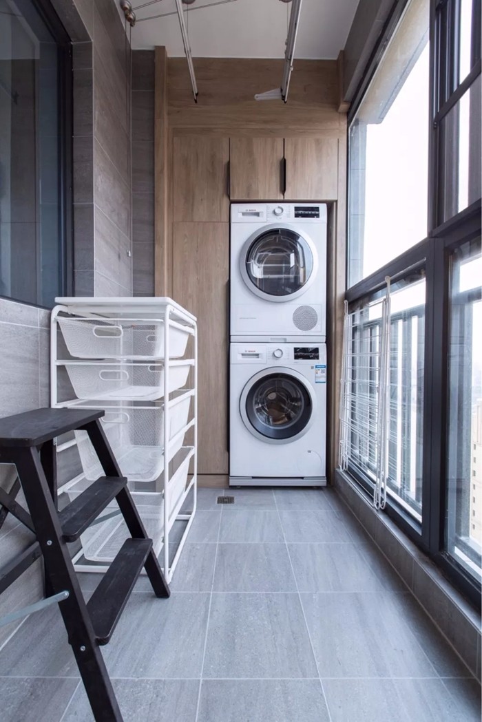我們以往分享的“陽(yáng)臺(tái)種花種草”之類的專題,習(xí)慣了晾曬衣物的人可能就會(huì)非常糾結(jié)洗衣后的晾衣如何處理,上來(lái)就說(shuō)衣物曬哪里之類的質(zhì)疑。在遇到了沒(méi)有陽(yáng)臺(tái)的戶型,或是陽(yáng)臺(tái)空間作為它用的空間,其實(shí)衣服晾曬的問(wèn)題,完全是可以由烘干機(jī)來(lái)代替的。今天我們也來(lái)分享一些沒(méi)有陽(yáng)臺(tái)或是陽(yáng)臺(tái)不曬衣物的設(shè)計(jì),看看他們家是如何布置烘干機(jī)的吧!