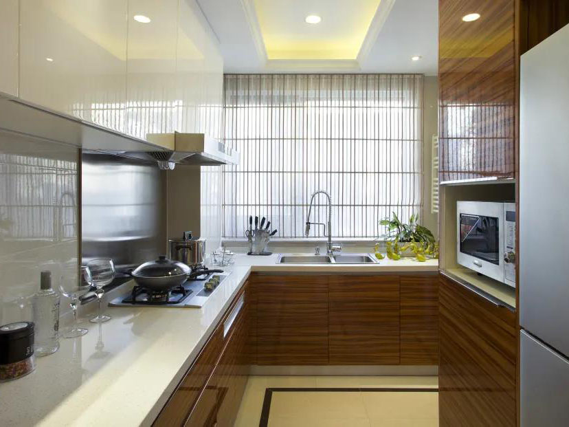 對(duì)廚房要求不高,對(duì)房間要求較高的家庭,可以選擇一字型布局能最大限度的節(jié)省空間為其他的房間騰出面積。