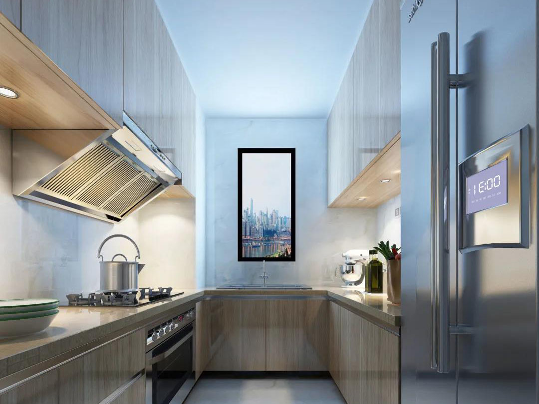 對(duì)廚房要求較高的家庭,可以選擇U字型廚房布局,這樣的布局動(dòng)線更為清晰功能也更為全面,可以讓日常烹飪發(fā)揮更多的想象力。