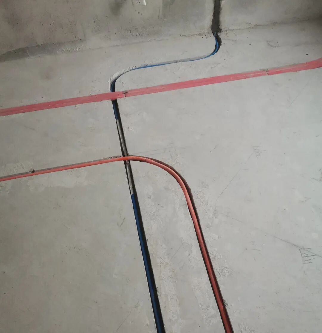 橫平豎直的優(yōu)點就是整潔美觀,后期施工也比較方便。記住先彈線再開槽,開槽深度保持在30~35mm,俗話說得好“開槽不規(guī)范,事后兩行淚”!