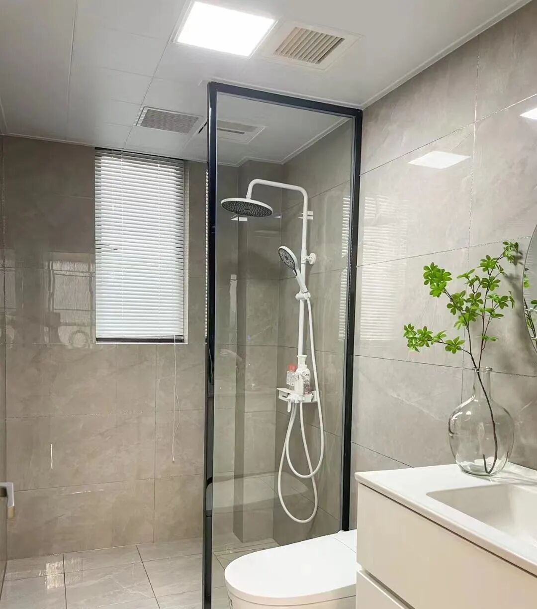 ? 墻面刷的白色的乳膠漆、地面鋪貼米白色的瓷磚,整體色彩統一;